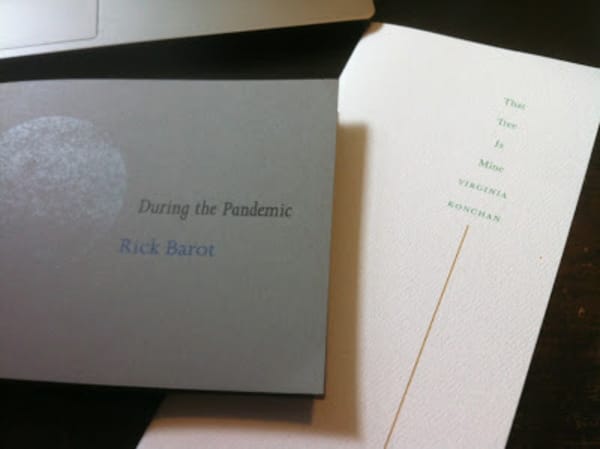 Rick Barot’s exquisitely-designed chapbook During the Pandemic (2020) was limited production/circulation but a pleasure to read. During the Pandemic is the third chapbook in Albion Books’ seventh series. Rick poet based in the San Francisco area and a great find. Courtesy of a twitter thread.