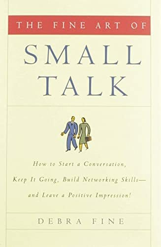 "The Fine Art of Small Talk" by Debra Fine. This was an interesting book. It gives you 50 ways to fuel a conversation. Every one can learn the art of small talk, especially those starting off in business without formal training or education or those who have been solo contributors much of their lives and transitioning from a corporate to a personal environment. Its a quick guide to being less awkward.