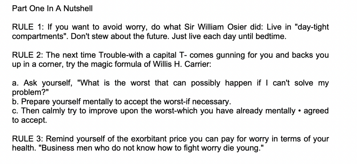 In todays crazy economic environment. One of my fav reads came to mind. How To Stop Worrying & Start Living" by Dale Carnegie. It has sold 6,000,000+ copies, Im happy to lend you mine . But here 2 excerpts to enjoy and learn from.