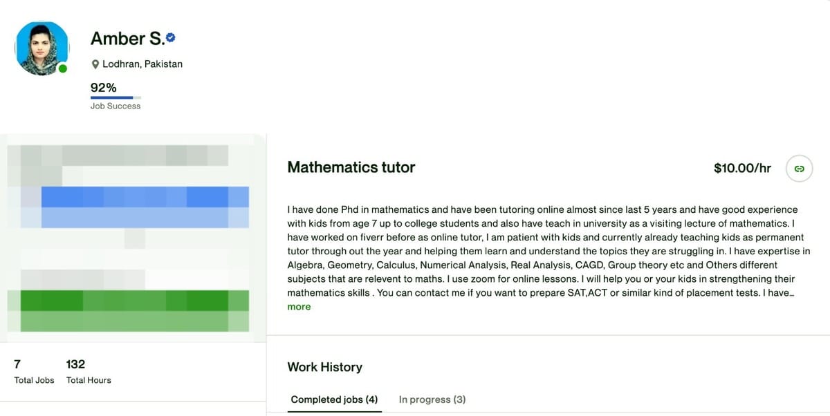 But here is where the story takes a turn, it was a Phd qualified Math Tutor, charging 4$/H from Pakistan. Amber is from Lodhran, most people in Pakistan, could not point out where Lodhran is on a map. If I had not had a logistics role in a former life, I would also struggle.