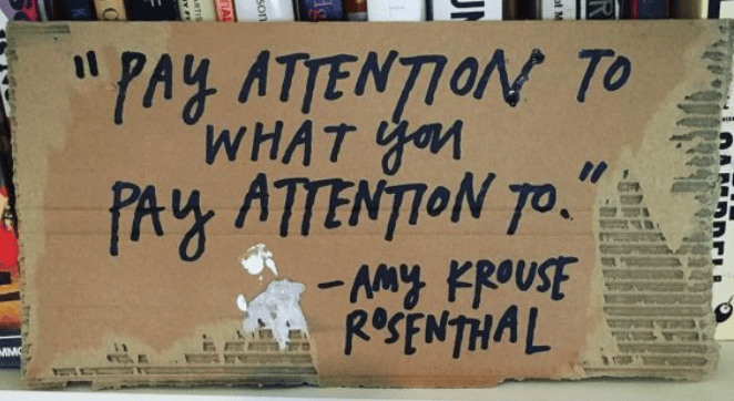 “For anyone trying to discern what to do with their life,” the author Amy Krouse Rosenthal said, “PAY ATTENTION TO WHAT YOU PAY ATTENTION TO. That's pretty much all the info you need.”