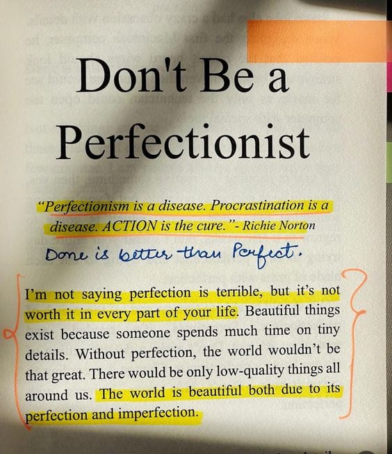 I saw a post today, it resonated with me. Action > Perfection and action enables outcomes, perfection distracts from it.