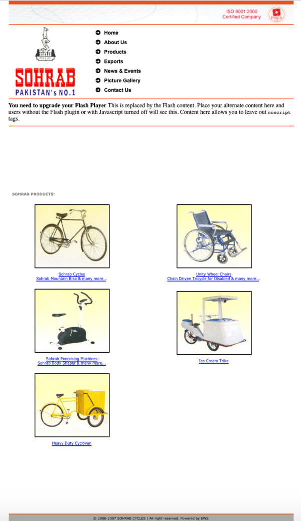 Bicycles. That too Pakistani Bicycles. Sohrab in Particular. What you must know is that if you are lucky enough to operate in a space with little to no competition and resting on your laurels, that space is ripe for the taking. What it also tells you that if you dominate your space, it doesn't matter how crappy your website is.