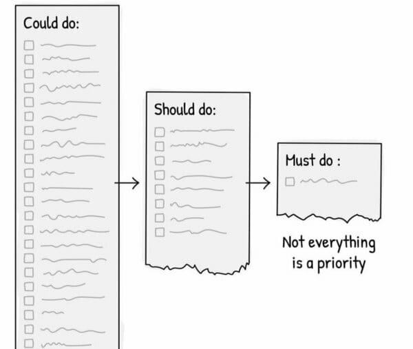 Life can be a wish list of tasks. Things you could do, things you should do and things you must do. You only win by doing what you must do. No one wins by always staying entangled in the could dos. untangle your brain.