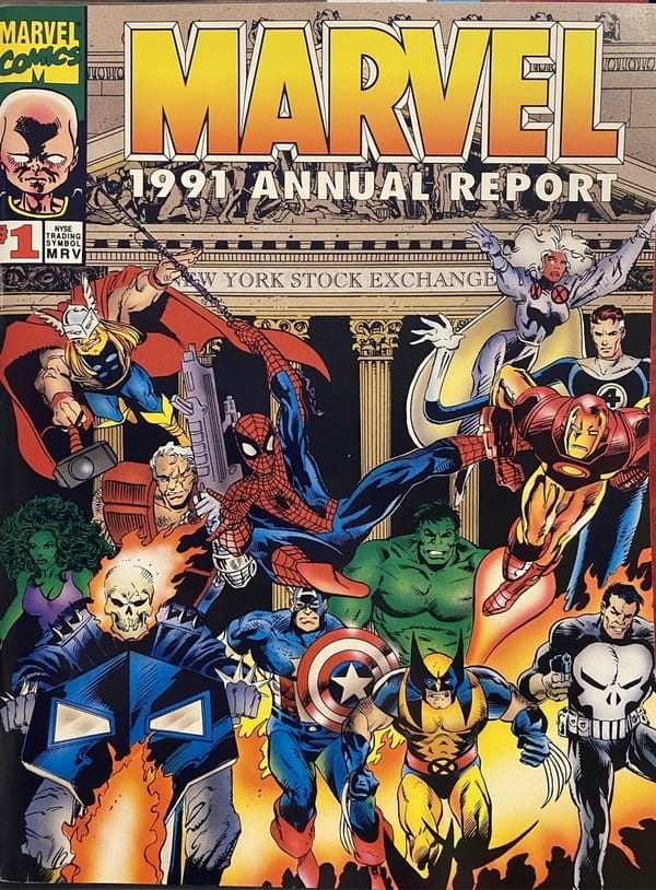 In a meeting with Marvel executives, including President Terry Stewart and CFO Robert Riscica, Fishman addressed the problem of how to communicate the unique and complex Marvel Comics Universe within a typically dry stockholder report. The solution they devised was to turn the report into a comic book starring Marvel superheroes. You can buy them on ebay if you are so inclined.
