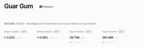 Total numbers for guar from Pakistan as in industry for 2021 were